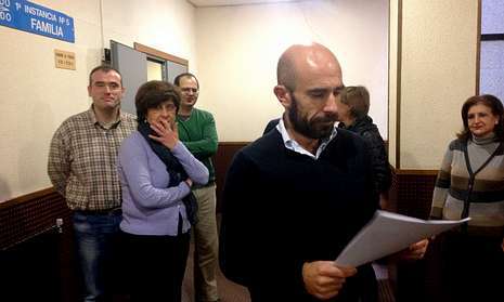 Funcionarios de los dos juzgados de Familia y Pablo Valeiras, de Alternativas na Xustiza-Cut, ayer.